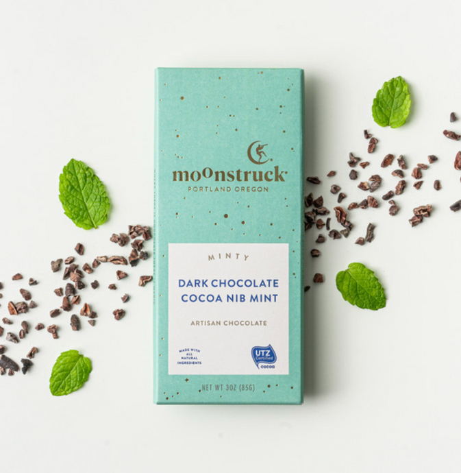 Minty Dark Chocolate Cocoa Nib Mint Bar - Moonstruck Chocolates