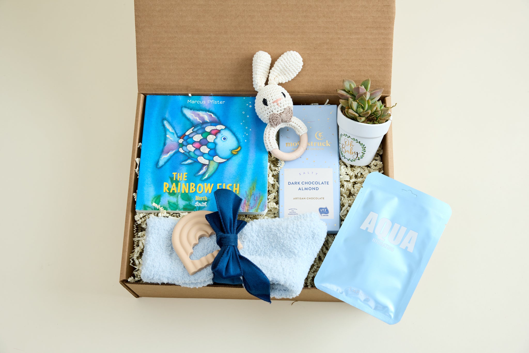 Each box is beautifully packaged with natural shredded paper and finished for easy gifting—ready to bring a smile to new parents and their bundle of joy.